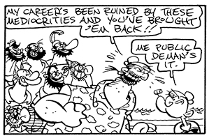 Pero la sátira social ponía nerviosos a la gente de King Features. Popeye a esta altura era importante más como marca y producto de merchandising que como historieta y joder con cosas conflictivas podía hacer que algún negocio se cayera. De a poco, el choque entre London y la gente de licencias del syndicate se hizo inevitable.