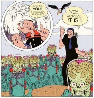 En el 2013, IDW sacaría el especial Mars attacks Popeye! en el que nuestro marinero favorito debe enfrentarse a los marcianos de las figuritas clásicas, que son dirigidos nada más y nada menos por la Sea Hag. Escrito por Martin Powell y dibujado por Terry Beatty , es una historieta entretenida que resulta graciosa de leer. Lamentablemente, de ahí en más no ha habido nuevas historias de Popeye hechas por IDW.