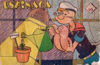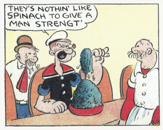 Se supone que esa afición a las espinacas en la historieta habría sido una concesión de Segar al dibujo animado y/o a los productores de espinacas (no se tiene la certeza) para favorecer el consumo del vegetal (económico en esos años de Gran Depresión) entre los niños.