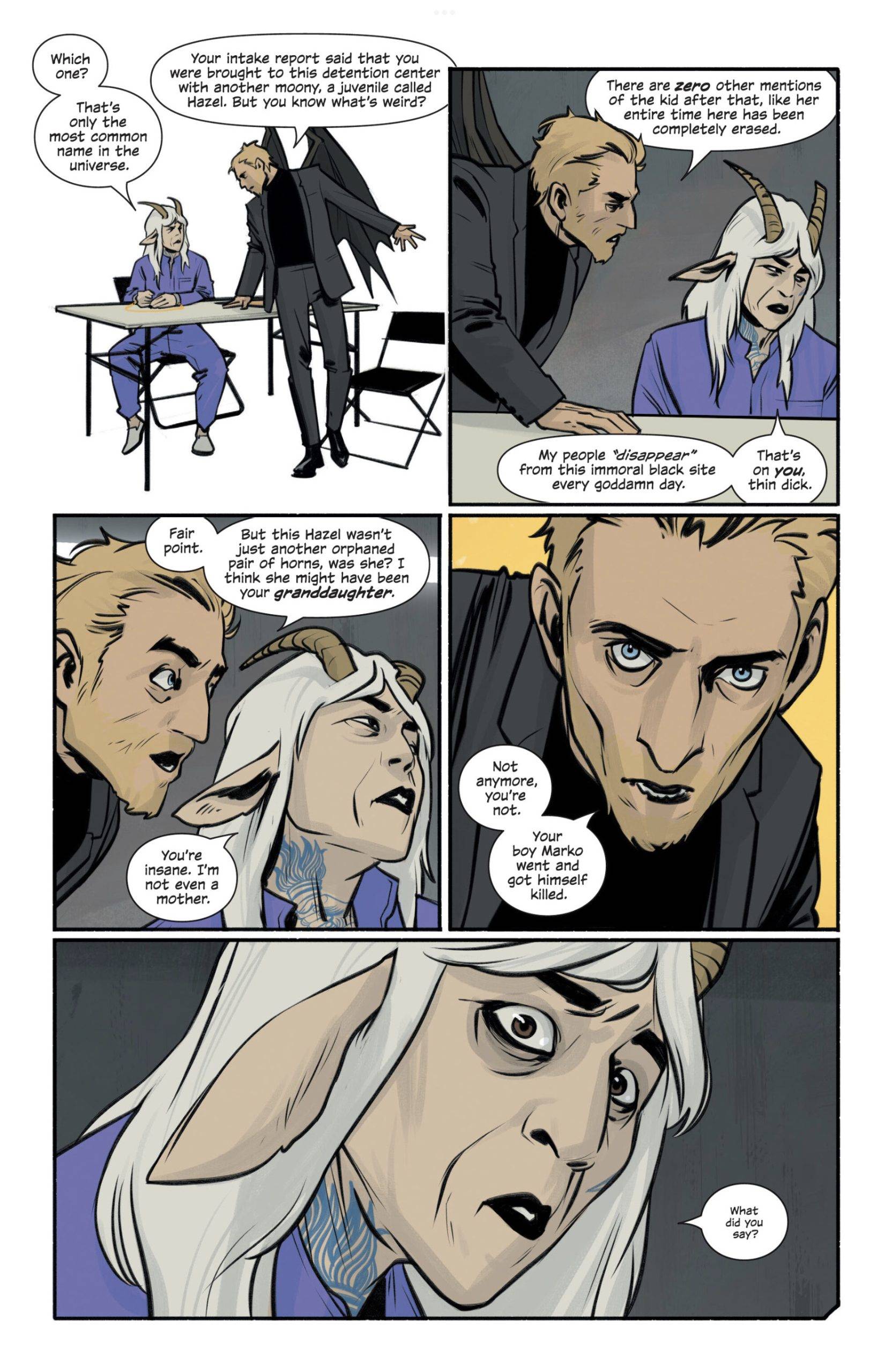 Lo que si les puedo afirmar, es que el statu quo de Saga fluctúa todo el tiempo, no solo por la muerte de algunos personajes clave, sino también por el paso del tiempo que suele darse entre episodios o entre un volumen y el siguiente. Arrancamos presenciando el nacimiento de Hazel, y para esta altura de la historia ya tiene 12 años, algo que también es poco habitual en este tipo de series.