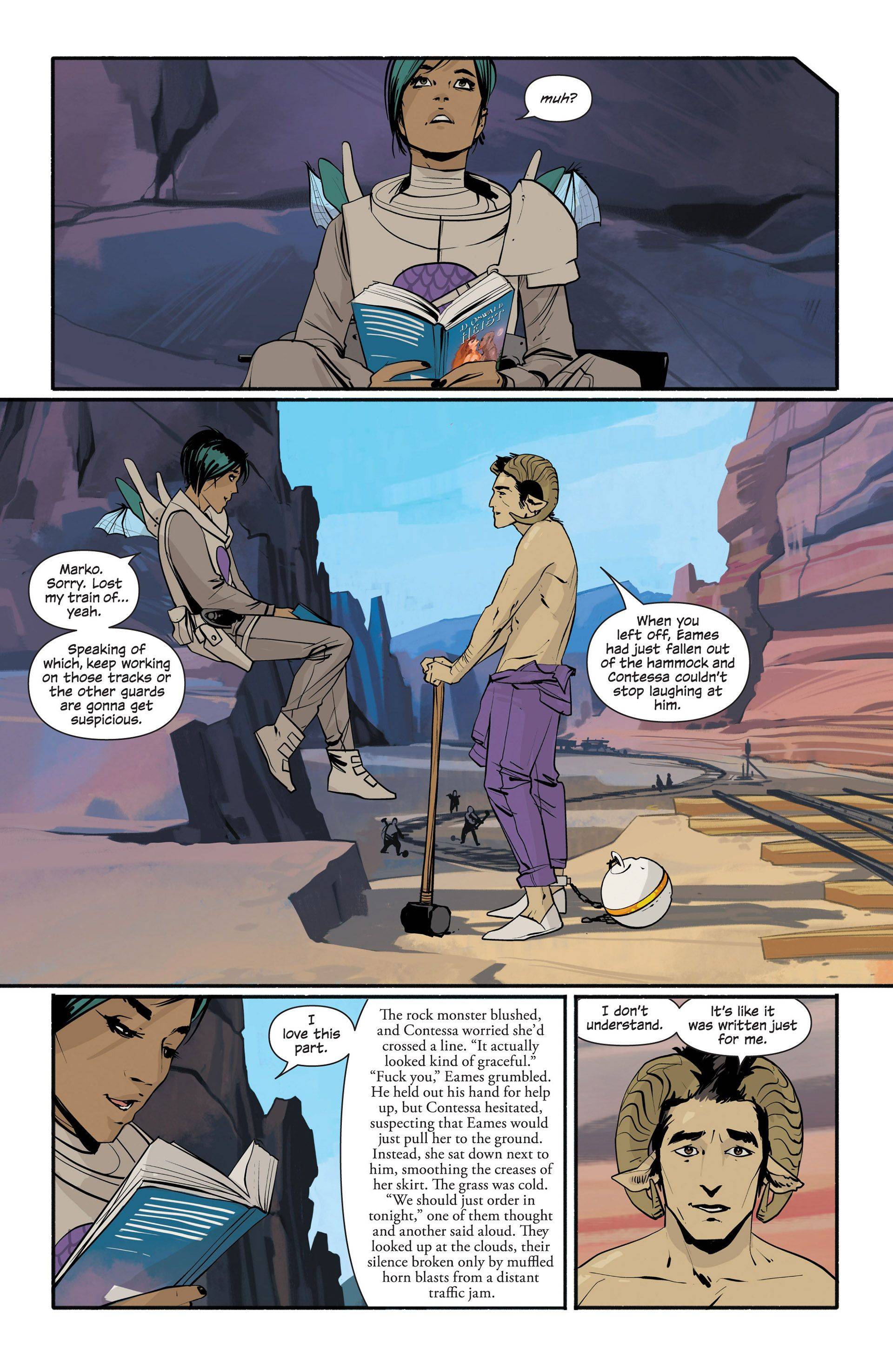 Resulta inevitable preguntarnos qué tan cocinado esta todo, ¿no? Qué tan redondo es el plan a largo plazo que tienen los autores. Y al respecto de esto Vaughn comenta: “Tengo bastante trazada la hoja de ruta para la segunda mitad. Ya sé cuál va a ser la última viñeta de la última página. Pero quiero darnos la libertad de desviarnos de esa hoja de ruta cuando Fiona tiene alguna idea brillante, o dice "estaría bueno explorar este otro aspecto", o "che, en este momento me encantaría dibujar algo tipo western". Así que hay una hoja de ruta muy detallada, pero también la libertad para agarrar para algún otro lado cuando pinta".