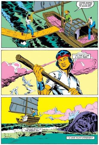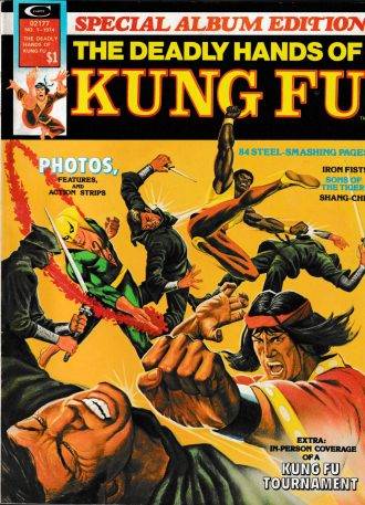 También en 1974 se publica The Deadly Hands of Kung Fu Album Edition, un impresionante especial en blanco y negro con 84 páginas, un montón de artículos (entre ellos uno centrado en la obra de Sax Rohmer y en las novelas y películas en las que Fu Manchu tiene roles destacados) y una historieta extensa, dividida en tres capítulos. Uno lo protagoniza Shang-Chi, otro Iron Fist y el tercero los Sons of the Tiger, un trío de karatecas que Gerry Conway y Dick Giordano habían creado para el nº1 de Deadly Hands. El villano es Fu Manchu y entre los guionistas que participan están Tony Isabella, Chris Claremont y un nombre a tener muy presente: Doug Moench.