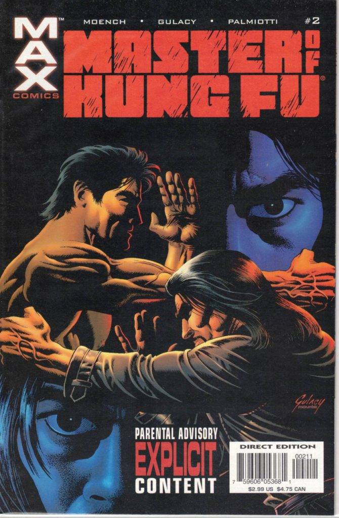 Estamos en 2002 y ahora Marvel es esa editorial mágica en la que (gracias al talento y la onda con los artistas de Joe Quesada y Bill Jemas) todo puede suceder. Y sucede algo increíble: Doug Moench y Paul Gulacy se vuelven a juntar para una nueva miniserie de Shang-Chi, seis episodios que salen en el sello MAX, apuntado al público más crecidito. Los icónicos autores de los ´70 reúnen a nuestro héroe con Balck Jack Tarr, Leiko Wu y Clive Reston (estos dos ahora casados entre sí) para una nueva aventura situada entre Hong-Kong y Singapur, repleta de acción, tiros y explosiones. Esta vez sí, aparece Fu Manchu (aunque nadie lo llama así) y confronta abiertamente con Shang-Chi. Por enésima vez, los buenos se van a ir convencidos de que el innombrable se murió… aunque ya sabemos que de alguna manera va a zafar.