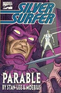 Cuenta la leyenda que en la San Diego Comic Con de 1987 (o en la Anaheim Book Fair de 1988, según a quién le preguntemos), dos creadores mitológicos se conocieron y terminaron por compartir un almuerzo. Para cuando las flores del reconocimiento profesional mutuo dejaron de volar de un lado al otro de la mesa, una idea había empezado a tomar forma: Stan "the Man" Lee y Jean "Moebius" Giraud tenían que trabajar en un mismo proyecto. Según sus propias palabras, Moebius siempre había querido hacer "un verdadero comic americano". Stan, por su parte, cuenta que fue el propio maestro francés quien mencionó su interés por el Silver Surfer, que le parecía "fascinante". En retrospectiva parece casi obvio: ¿Qué otro personaje de Marvel tiene un balance tan perfecto entre poder, elegancia y lirismo poético? Como bien señalara en su momento Stan: "Moebius tiene el alma y las inclinaciones de un poeta". Sea como fuera, el protagonista del proyecto estaba decidido y así, de la colaboración entre estas dos fuerzas imparables de la creación de viñetas nació en 1988, bajo el sello de Epic Comics, Silver Surfer: Parable.