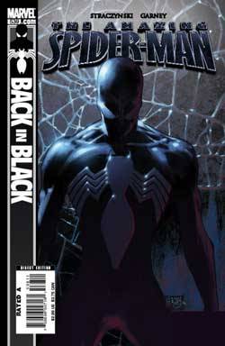 “Inmediatamente después”: Back in Black. Saga harto importante para One More Day. Status quo: Peter es un fugitivo de la ley y TODO el mundo sabe quién es. Ahora, más que nunca, debe cuidar a su tía May y a su mujer. Es blanco fácil. Y, encima, matan al Capitán América, su héroe y guía moral; y, encima, cae prisionero de Hulk durante su World War. Y encima, para rematar un pésimo año, un francotirador hiere de muerte a su tía May. Claro, el tipo no iba a por la tía sino por el Spidey; un movimiento en el instante justo puso en movimiento de rueda One More Day. Furioso, Spidey jura matar a los responsables y, para estar a tono con su nueva actitud años ochenta, decide enfundarse en su viejo traje negro. De ahí el título de la saga.