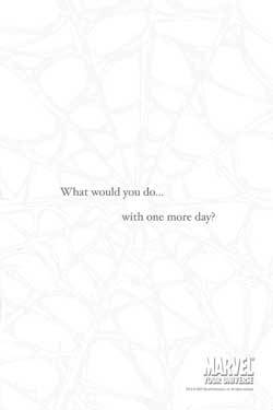 Quesada es un fanático del sensacionalismo. Adora dar conferencias y mostrarse, y adelantar sucesos y hablar del Universo Marvel como propio. Tras la Civil War, y mientras Spidey se enfundaba de negro, Joe comenzó a tirar imágenes sueltas del GRAN evento arácnido. Carteles con el nuevo leiv motiv de la serie “¿Qué pasaría si tuvieras Un Día Más?” y los cambios en la colección tras la partida de JMS, los nuevos equipos creativos, etcétera, etcétera. Y los blogs y las páginas web comenzaron a especular y mucha gente recordó el trago amargo de Sins Past.