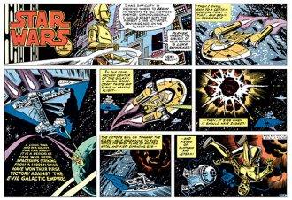 Al igual que las primeras historias en Marvel, las tiras de los diarios tienen un aire que a veces recuerda más a títulos como Flash Gordon que al propio universo de George Lucas, ya que originalmente los autores no tenían tanta tela para cortar en cuanto a material de referencia con sólo una película en su haber. A medida que se producían los estrenos subsiguientes aparecieron nuevos hilos conceptuales que formarán el telar constitutivo de la identidad de la saga, como locaciones, naves, uniformes, personajes, etc., como puede verse en la larga y prolífica etapa de Goodwin y Williamson.