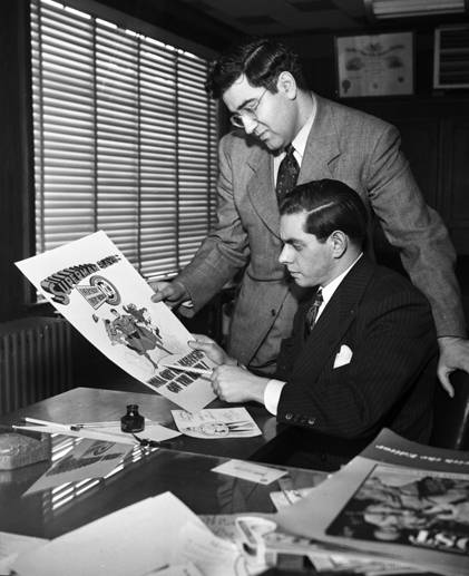 Aquí aparecen los capos de la editorial por aquel entonces: Jack Liebowitz y Harry Donnefeld, dos empresarios tan poderosos como odiados en el ambiente del comic. Ellos fueron quienes absorbieron en mayor cantidad las ganancias por el personaje y quienes idearon el contrato por Superman.