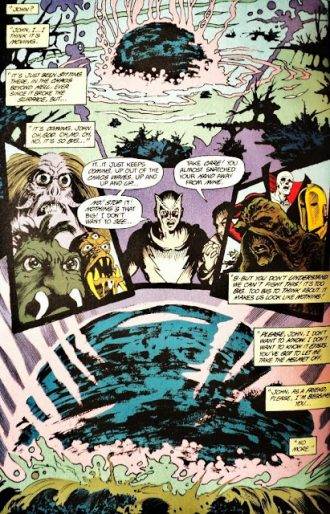Y es justo antes y después del mentado n°33, que el Mago se manda dos de los mejores unitarios que tiene la serie: Pog y Rites of Spring. Lo que Moore logra en estos numeritos, sumado a lo que ya había conseguido con The Burial (the Saga of the Swamp Thing n°28) y The Anatomy Lesson, demuestra que por más grosso que sea a la hora de plantar una saga, su verdadero fuerte son los episodios unitarios, donde pela algunas cosas muy fumadas y se permite jugar un poco más con la experimentación.