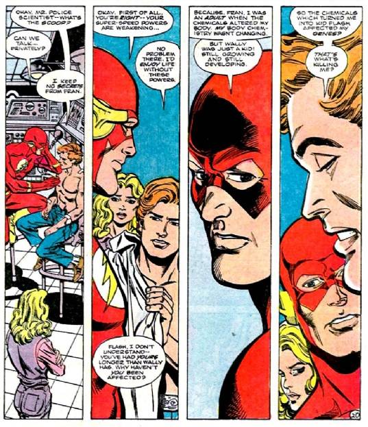 El otro número es una historia de Wally contra el Dr. Light, dibujada por Carmine Infantino, que tiene unas pocas páginas de Perez que sirven de prólogo para la boda que se está por venir en el próximo número. Con la excusa de que Donna no tiene noticias de Wally, sobre su asistencia a la boda, la historia nos cuenta cómo el Dr. Ligth ataca Central City y es detenido por él y Francine que justo se encuentran de paso, para reunirse con Barry. Ahora Wolfman nos cuenta que Wally siente un inmenso dolor cada vez que usa sus poderes y parece que estos lo están matando. Un numero bastante de relleno, con poca conexión con la serie, salvo por las paginolas de Perez, que parecen existir más que nada para que la boda se dé en un número significativo como es el 50 de la serie.