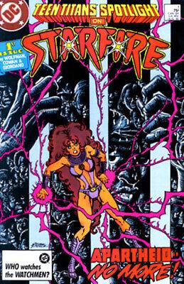 Los dos primeros episodios, como no podía ser de otra manera, están escritos por Marv Wolfman, y dibujados por Denys Cowan. Se centran en el regreso de Kory a la Tierra, pero en lugar de bajar en Estados Unidos, vaya uno a saber por qué termina en Sudáfrica. Así estos dos números exploran el tema del Apartheid, y la aparición de un pseudo Mandela, llamado Nelson Mandutu (no se esforzó demasiado Wolfman) quien lidera una revolución pacífica, mientras que la policía del gobierno lo busca para detenerlo. La historia es bastante cruda y aprovecha la visión alienígena de Starfire para despegarse del conflicto lo más posible, y tener una mirada quizás demasiado yanki del mismo, donde al principio ella interviene en contra los negros, que están prendiendo fuego viva a una mujer embarazada, por ser una informante del gobierno. Tras ponerse del lado de los militares para detenerlos, se da cuenta de la bola de prejuicios que estos tienen contra la gente de color, al punto de no considerarlos seres humanos. Eso da vuelta la tortilla: Kory se pasa al bando de los negros, habla con Mandutu, entiende un poco mas cuál es la realidad social del país y decide ella sola hacer justicia. Ataca una base militar en la cual parece que tienen retenido al dirigente, y tras la destrucción de la misma, la hacen responsable de su muerte.