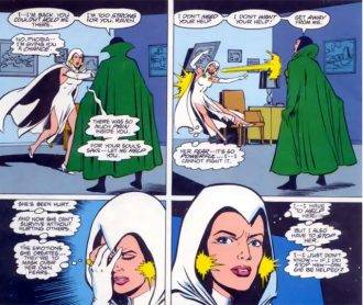 El siguiente es un número que enfrenta a Raven con Phobia, y tras lo de Gizmo, vemos cómo Wolfman de a poco se va sacando de encima viejos villanos, como para cerrar cabos sueltos en pos de cambiar algo, que no se termina de entender muy bien qué es. Acá Eduardo Barreto (a pesar de figurar como dibujante en los títulos) es reemplazado por el maestro Curt Swan,y todo tiene un tufo terrible a número de relleno, o incluso a historia pensada para la ya difunta Spotligth, ya que salvo por las primeras páginas (que retoman el tema del reciente nacimiento de la hija de Blood), todo el resto del episodio va para otro lado. Raven investiga una serie de asesinatos y su búsqueda la lleva a un encuentro final con Phobia, quien tiene la misión de matar a un diplomático que termina por ser su padre, con el que tiene una relación complicada. La hija de Trigon sabe de esto, y con sus poderes ayuda a Phobia a superar el trance. Pero todo tiene un tufo horrible a episodio de relleno.