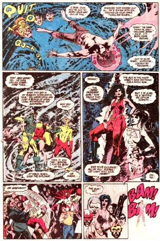 Lo primero que se me ocurre es decir que el primer crossover entre Robin, Aqualad y Kid Flash, fue hace 8 años y Dick tenía 13, lo cual blanquea que ahora tiene 21 y las historia de los ´60 transcurrieron a principios de los ´80 (donde en realidad pasaron los primeros episodios de esta formación). Así planteado, hace muchísimo ruido la incorporación de Wonder Girl, que ya no cerraba por ningún lado, pero así lo hace todavía menos. La chica aparece de la nada y decide sumarse a un grupo conformado todo por sidekicks porque sí, y los ayuda a luchar contra Antithesis que tenía controlado a toda la Liga, como ya habíamos visto en el nº 53, de 1978. Sin Wonder Woman, falta un elemento integrador importante en el pasado de Donna, que si lo ignoramos no jode, pero cuando se lo quiere explicar no cierra de ninguna manera, como en este caso. Lo siguiente más o menos interesante, es que Perez, salda una deuda pendiente con los lectores de 1970 y modifica la salida de Robin del equipo tras el asesinato del Dr. Swenson en el nº 25 de la serie original. En aquel momento el personaje se fue para protagonizar sus propio back-up en Detective Comics, pero acá te cuentan que no se suma al equipo de Jupiter, tratando de resolver el crimen que le adjudicaron a los Titans y por el cual no podían volver a usar sus trajes y poderes. Así que, casi 20 años después, tenemos la resolución de esa historia, con el verdadero responsable y sus motivos, algo que había quedado sin resolver entre la partida de Bob Kanigher y el regreso de Bob Haney, sin olvidarnos que en el medio la serie también cambio de coordinador por su caída en las ventas.