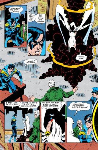 Nobleza obliga, debo confesar que el guion está a la altura de las expectativas. Ya había dicho en alguna oportunidad que después de Crisis a Wolfman se le había secado el cerebro y había quedado bastante corto de ideas, pero en esta etapa, quizás empujado por la colaboración con Perez, agarró como un segundo aire, que nos dio un año más que digno en la colección. Esta saga es un claro ejemplo de ello. No puedo hacer a un lado la importancia de Perez, porque justo antes de esta saga, es el mismo Wolfman quien en el título de Batman lleva adelante “Year 3”, donde se hace un repaso del origen de Dick como Robin, y nos cuenta también qué es lo que está haciendo el personaje al tomarse un tiempo de licencia con los Titans. De ahí nomás enganchamos con el arco que nos compete.