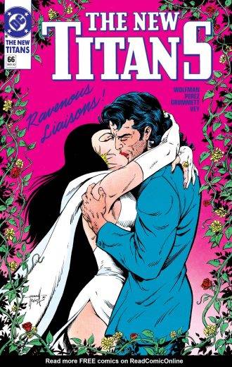 Los nºs 66 y 67 de New Titans (Mayo y Junio de 1990) marcan la despedida definitiva de George Perez de la serie y su colaboración con Marv Wolfman. Igual es importante decirlo, su “participación” es solo como co-plotter, es decir la nada misma. Y a mí se me ocurre (por desgracia no encontré información precisa al respecto) que es una idea que charlaron entre ambos autores en el momento que Perez se reincorporó a la serie para hacerlo más adelante y por eso su acreditación. No nos olvidemos, que el dibujante regresó con mucho ímpetu a la serie y dispuesto a quedarse un buen tiempo, pero otras obligaciones lo llevaron a solo poder realizar la saga de Troia y después de eso, tener algunas colaboraciones esporádicas. Pero esa no era la idea original.