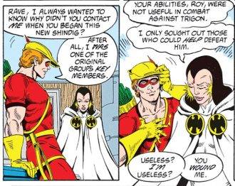 Lo cierto es que el nuevo aire le sienta bien a la serie, y no voy a decir que el salto de calidad es abismal, pero se nota una diferencia en relación a los últimos números. Wolfman se divierte como en las épocas en que lo dejaban jugar con George Perez, y nos entrega lo que posiblemente sea el último gran arco que tiene la colección. Para no hacerla muy larga, y como venía contando, los Titans están celebrando su aniversario, para lo cual organizan una fiesta. Pero al final del día, el único que se presenta es Nigthwing, porque todos sus amigos fueron secuestrados de antemano, salvo por Donna que está de vacaciones en Grecia y Roy, que al principio del capítulo dice que se va a fijar como está la hija y se lo olvidan por completo, como hasta el nº 97.