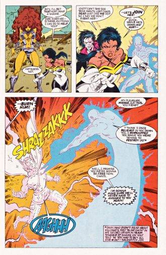 Breve acotación sobre este tema, al que ya voy a volver cuando haga el repaso por la serie completa. Dispuestos a cantarle retruco a Marvel y el curro de las variant covers, Peterson tuvo la genial idea de que además de que el nº 1 de la serie tuviera cinco portadas diferentes, cada una viniera con una historia de origen de uno de los personajes, aparte de la historia principal parte de “Total Chaos”. Ya haremos el repaso de las mismas, pero de momento alcanza con saber esto, ya que ninguna tiene incidencia directa en la saga.
