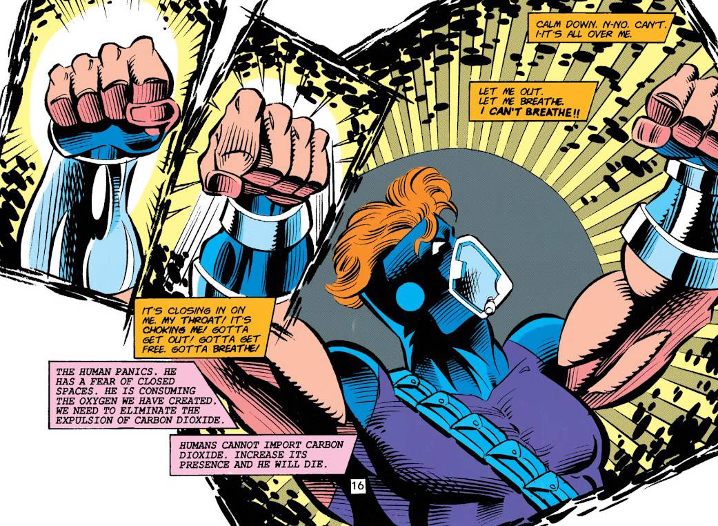 Cuando creíamos que la serie no nos podía someter a peor castigo que Bill Jaaska, aparece de la nada Nick Napolitano, a revolvernos el estómago de maneras impensadas. Este señor desconoce por completo la anatomía y dibuja un Arsenal y un Changeling completamente deformes. Supongo que lo llamaron por su facilidad para dibujar tecnología, ya que son unos numeritos centrados en Cyborg y el planeta Technis, donde el artista se la pasa dibujando chirimbolos y aparatitos por todos lados, a pesar de teclear mal a la hora de hacer a los personajes.