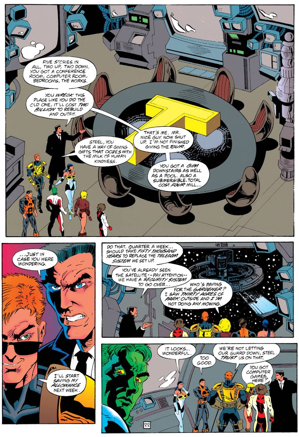 El nº 0 es un enfrentamiento contra distintos villanos que laburan para el Crimelord, y sirve un poco para presentar a los personajes y ver cómo funciona el equipo. Vemos que el gobierno les proporciona un nuevo cuartel en una estación de tren en Liberty Park, y al final hay una breve aparición de Kyle, que es seguido de cerca por una entidad. Lo más relevante es que Changeling se empieza a comportar de manera extraña y parece estar perdiendo el control de sus acciones, poseído por la semilla de Trigon con la que lo infectó Raven unos números atrás. Esto va a desencadenar todo lo que sucede en el nº 115, donde Gar, ya completamente corrompido por Trigon, va a atacar a sus compañeros de equipo y sacárselos de encima. Primero se va encargar de Mirage en el satélite y después de los demás cuando vuelva a la Tierra. El episodio no es mucho más que eso y al final a modo de epílogo tenemos otra página dedicada a Kyle y la entidad que lo viene persiguiendo.