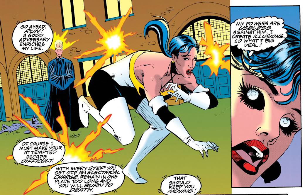 Acá si uno está muy hecho mierda, puede ir a leerse el nº 28 de Darkstars para ver el encuentro entre Donna y Jarras, cuando este trata nuevamente de vengarse de Psimon por destruir su planeta.