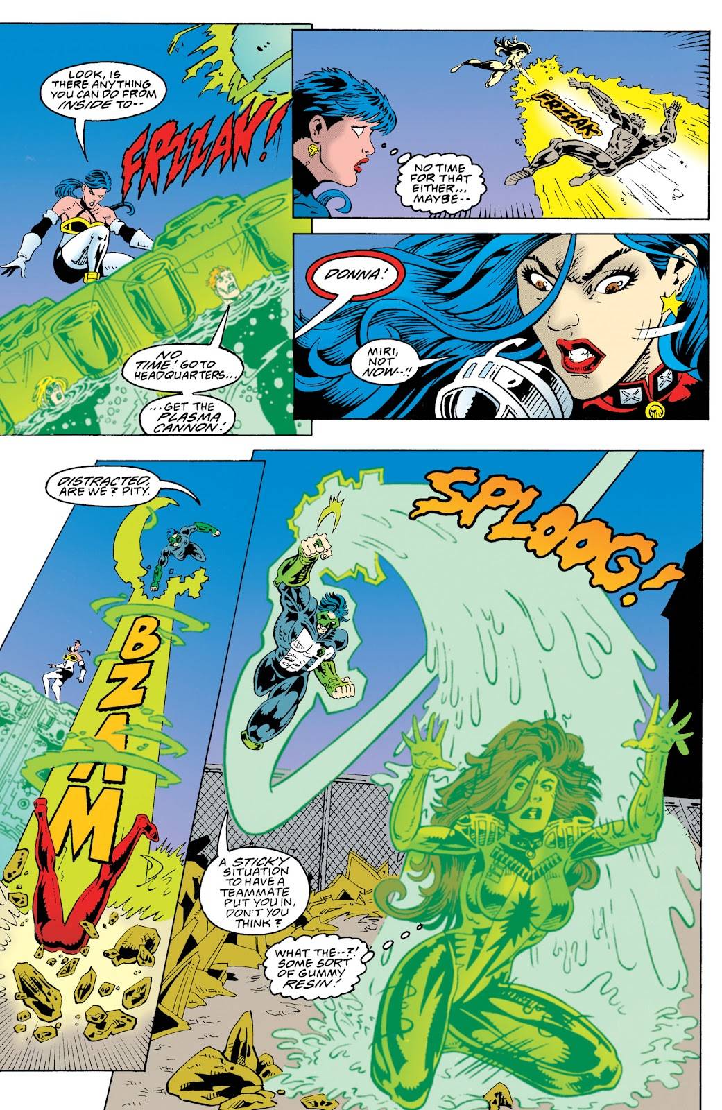 Para no hacerla muy larga, los Titans continúan su pelea con Changeling, cuando aparece Green Lantern y se los saca de encima. Entonces el foco de la pelea cambia por completo sin mucho sentido. Gar aprovecha para rajarse mientras los demás pelean con Kyle. En el medio, Donna rescata en el espacio a Mirage y ambas se suman a la pelea, justo a tiempo para que Psimon se haga cargo de que era él quien controlaba las acciones de Kyle.