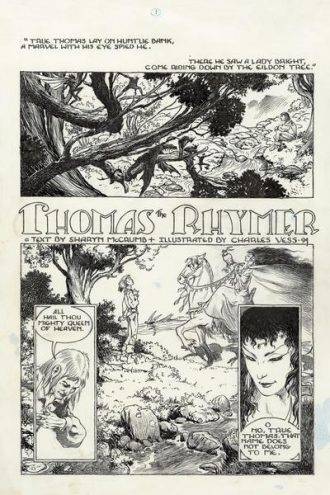 A diferencia de todos (o casi todos) los artistas que nombramos o nombraremos por acá, éste coqueteó con el mainstream. Fanzineó fuerte durante los ´70, y eso le permitió a principios de los ´80 entrar a Marvel, más concretamente en la mítica Epic Illustrated, no sin antes pasar por la publicación satírica National Lampoon o por la influyente Heavy Metal. En Epic, humilló con Children of the Stars, una historia que había publicado en el fanzine Comic Times, sin embargo para la antología marvelita, la redibujó. En paralelo colaboraría en la antología superheroica Marvel Fanfare donde se metió fuertemente con la mitología asgardiana. Dato no menor, porque si hay algo que Vess ama es la mitología, y de hecho también haría una novela gráfica en sintonía con sus gustos (The Raven Banner: A tale of Asgard). Tras algunos pocos fill-ins, se pasa a la Distinguida Competencia donde sería recordado por sus tres números con Sandman (donde le tocó dibujar el primer unitario dedicado a William Shakespeare, además de tener el honor de cerrar la serie en el nº 75) que lo condujeron a dibujar otra historia para Neil Gaiman, Stardust.