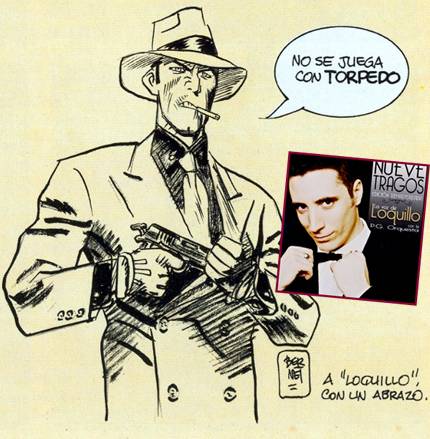 Corría el año 2000 cuando Oscar Aibar, guionista de la novela gráfica Nacido Salvaje y viejo conocido de Bernet y Abulí de la época de Toutain, les pide permiso a los autores para incluir una canción homenaje a Torpedo en Nueve Tragos, el último disco de Loquillo, un popular rockero español, para quien él trabajaba -entre otras cosas- como director de sus videoclips. Le encarga además la portada del disco a Jordi, oferta que el dibujante rechaza, pero de todas maneras le manda un dibujito dedicado al cantante y este es incluído en el disco junto a la letra del tema en cuestión, escrita por Oscar Aibar. De más está decir que autorizan la canción sin pedir nada a cambio, incluso le mandan la letra de Aibar a Abulií para que dé su visto bueno a la misma, pero al tipo no le gustó demasiado y se lo hizo saber al cantante.