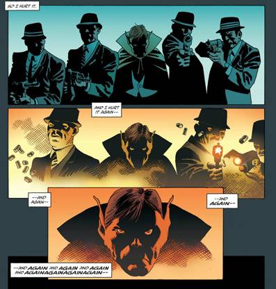 Y como sólo los grandes equipos creativos pueden lograr, con coherencia, pulso firme y mucho conocimiento del medio, los lectores nos acercaremos a este comic con resquemor, dubitativos, pero sobre todo deseosos de leer una historia en la que, una vez más, esta criatura desdeñable reciba su merecido castigo… y terminaremos sintiendo lástima por él, pena, y hasta algunos es probable que les termine pareciendo un personaje enternecedor. Gran parte de este poderoso cambio de paradigma se pudo efectivizar gracias a la enorme labor de un Risso en su salsa, con unos diseños de personajes absolutamente fascinantes y un manejo de luces y sombras magistral, idóneo para este tipo de historias lúgubres y sórdidas pero con corazón y alma.