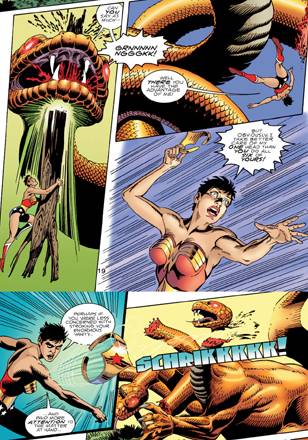 En los tres episodios siguientes, la revista se entrelaza con Our Worlds at War, un crossover grandilocuente que afecta a toda la línea heroica de DC. Un dictamen editorial obliga a Phil a boletear a Hippolyta y él, ya que está, hace desaparecer a la isla de Themyscira. Mientras tanto, de keruza, retoma a antiguas villanas como Circe, Silver Swan y Cheetah, que será la más afectada cuando aparezca un Cheetah varón, empresario, millonario… y argentino. El primer conflicto que se resuelve es el de Circe, a lo largo de los n°s 174-176, con un crossover con Joker´s Last Laugh metido en el medio. Le sigue un unitario en el que vemos cómo las Amazonas se reorganizan y fundan una nueva Isla Paraíso y después sí, arranca otra saga grossa.
