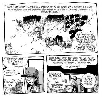 Hablemos un poco de la que debe ser tu obra más conocida, Kobane Calling. ¿Viajaste con la idea de hacer el libro o salió sobe la marcha? Y ya que estamos ¿cómo fue el proceso? Algo contas en la propia historieta, de que sacaste fotos, tomaste apuntes, pero más allá de eso ¿llegaste a producir páginas estando allá? ¿Qué tanto dependiste de tu memoria a la hora de plasmar lo que viviste en papel? Y la última ¿Qué tiempo te llevó terminarla?