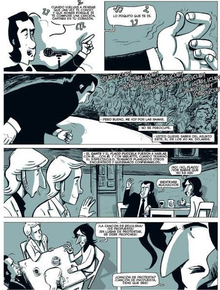 Aunque al tomar el libro puede que, por su portada y su título, enseguida se piense que se trata de una biografía, la propuesta no puede estar más alejada de eso. El libro comienza con Alfredo Zitarrosa en pleno concierto, como un artista ya consagrado. Su poesía y su música inundan el escenario del Encuentro de Juventudes Latinoamericanas de Trabajadores. Las viñetas se suceden y podemos leer partes de algunas de las letras más contestatarías del cantautor uruguayo. Una vez concluido el espectáculo, Zitarrosa se encuentra con Daniel Viglietti, entre otros nombres reconocidos, con quienes tendrá una breve conversación. A Zitarrosa lo quieren para un concierto y él, que es un referente del comunismo pero que al mismo tiempo tiene un manager, les cuenta que por cada uno de sus shows su representante pide 20 mil dólares. Luego se rectifica y dice que se trata de 20 mil pesos, para volver a cambiar y decir que en realidad son dos mil dólares. En definitiva, no sabe y tampoco le interesa. Él es un libre pensador y un artista revolucionario.