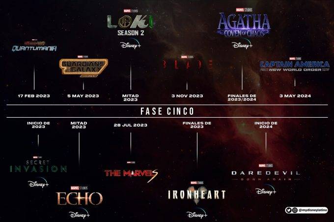 De esta manera, durante el próximo año legarán Ant-Man and the Wasp Quatumania (17 de febero), las series Secret Invasion y Echo (inicios y mediados de 2023), Guardians of the Galaxy vol 3 (5 de mayo), Loki temporada 2 (mediados de 2023) y The Marvels (28 de julio).