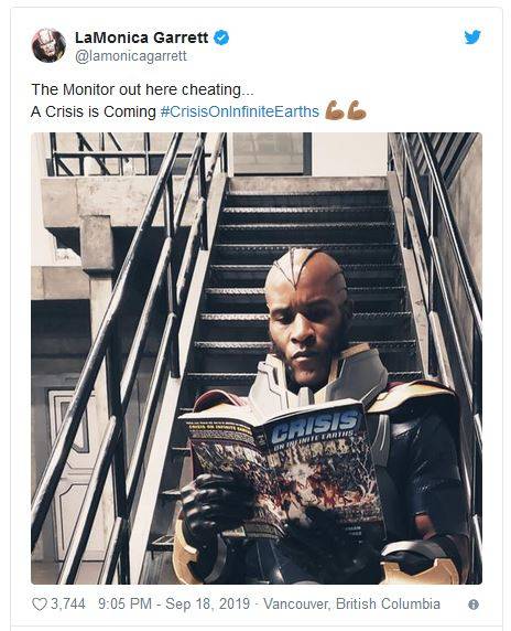 En este crossover volverá la figura del Monitor, interpretado por LaMonica Garrett, que como se puede ven la foto que él mismo publicó está estudiando a su personaje muy detenidamente, así como también varios personajes de todo el multiverso de series, incluido Black Lightning (Cress Williams), que tendrá nuevo traje, el legendario Kevin Conroy (que le prestaba su voz a Bruce Wayne en Batman The Animated Series), Burt Ward (el Robin del Batman de los ´60), Johnathon Schaech (el Jonah Hex de Legends…) y John Wesley Shipp, el Flash de la serie de los ´90 que también apareció en la nueva versión como el padre de Barry Allen. La otra actriz recurrente que podría llegar a aparecer es Lynda Carter, que en Supergirl interpretó a la presidenta Olivia Marsdin. Sin embargo, en este crossover podría volver a calzarse la tiara…