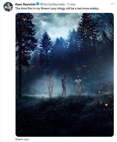 “La tercera película en mi trilogía con Shawn Levy tendrá un poco más de puñaladas”, escribió el actor en un tweet en el que se puede ver a sus personajes de Free Guy, The Adam Project y… ¡Deadpool!