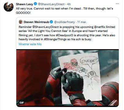 Lo cierto es que después de Free Guy y The Adam Project, Reynolds quiere seguir trabajando junto a Levy, responsable de films muy taquilleros como Real Steel, Just Married y series muy vistas como Stranger Things, y por eso publicó un tweet que despertó suspicacias.