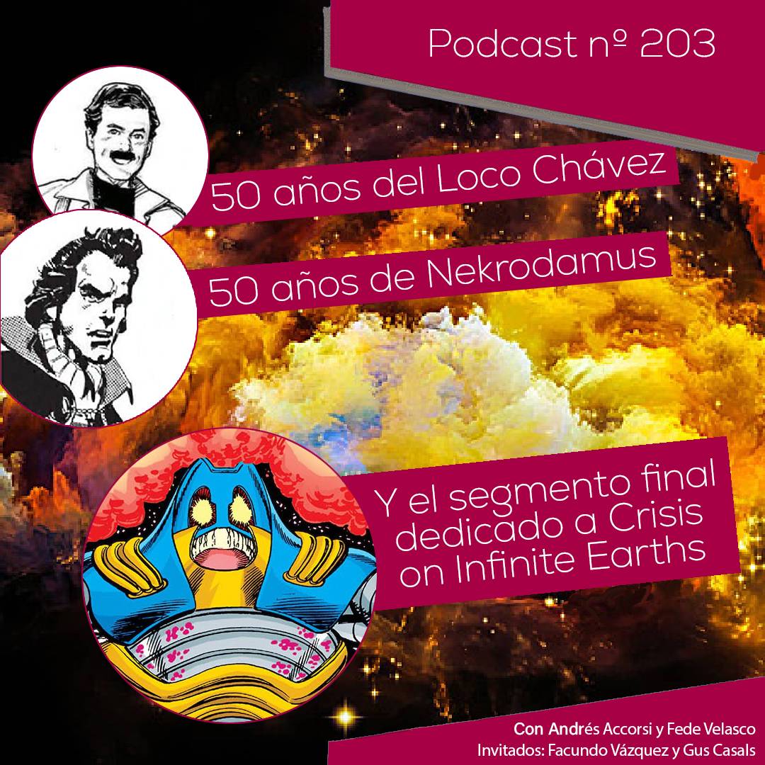 En el primer bloque, celebramos los 50 años de dos personajes emblemáticos de la historieta argentina: el Loco Chávez y Nekrodamus, junto al especialista Facundo Vázquez. En el segundo bloque, recibimos a otro experto, Gus Casals, para ponerle fin a nuestro repaso por la mítica Crisis on Infinite Earths. Y como siempre, para el final tenemos las Recomendaciones.