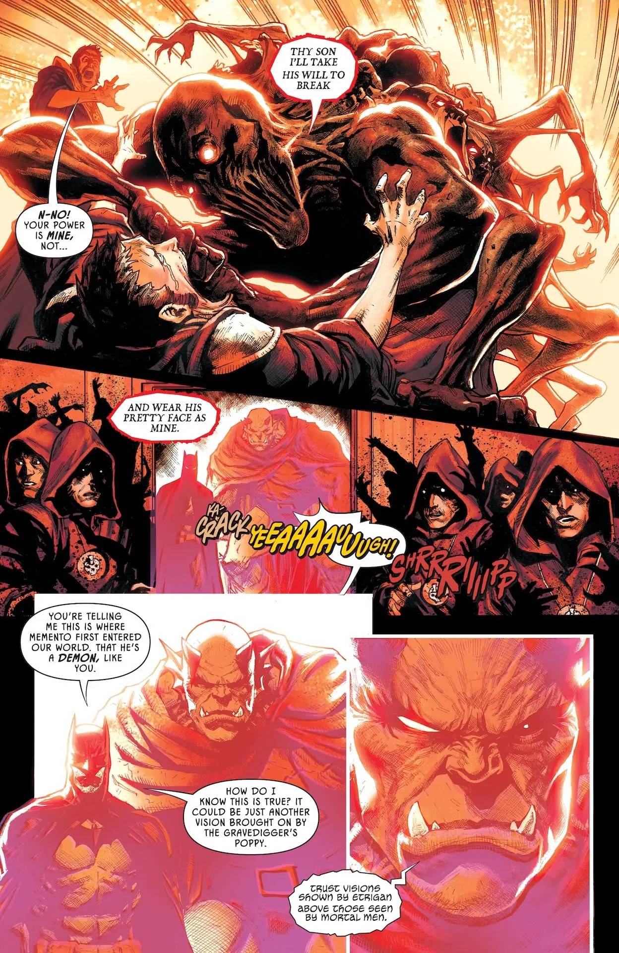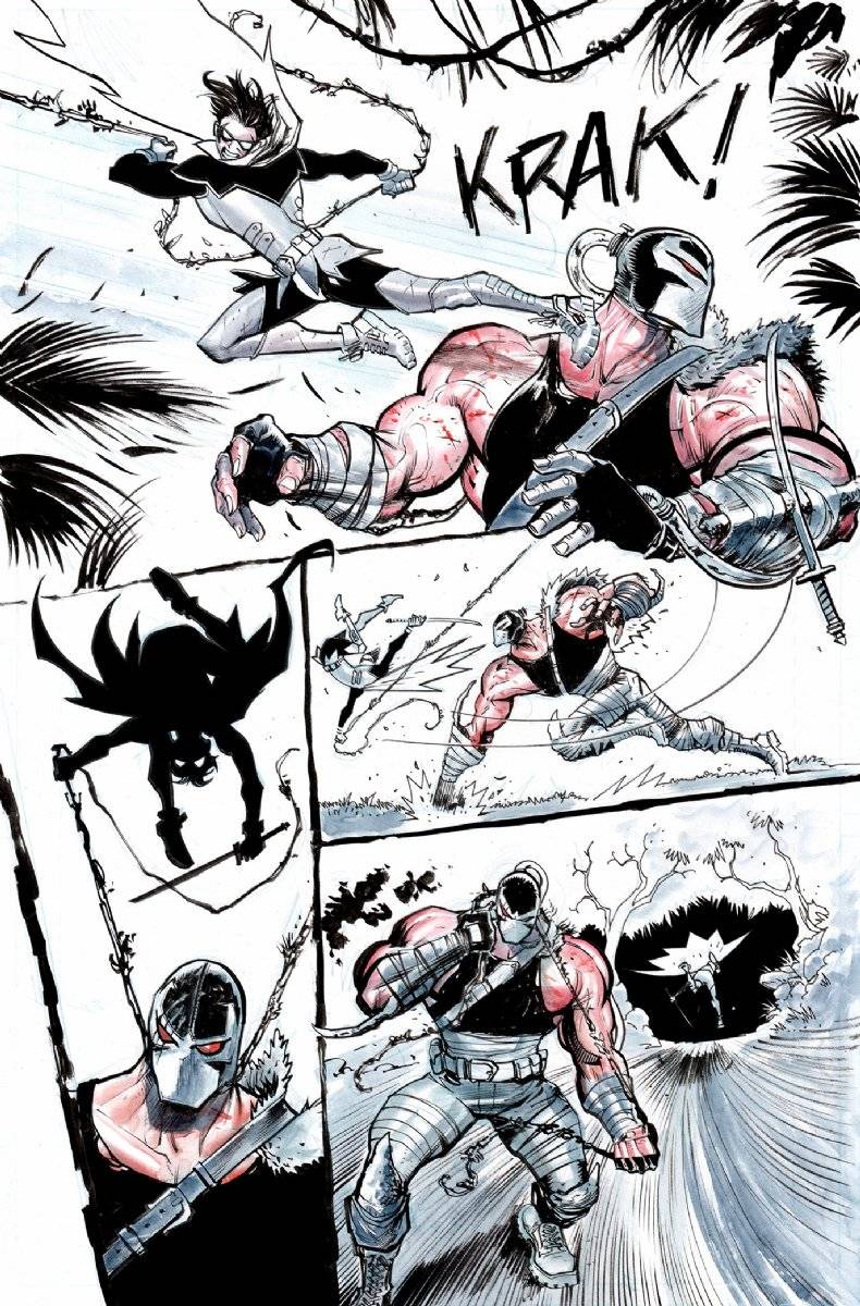 Kennedy Johnson aterriza con Memento, un arco argumental brutal, dramático hasta la médula, de esas historias que no te sueltan las bolas hasta que los ojos se te salgan de las cuencas. Una revisión en plan retro-continuidad del pasado de Bruce que no va a dejar títere con cabeza, ilustrada por la magistral mano del español Javi Fernández. Y la palabra clave acá es niños… cuando el que sufre es un pequeño, el dolor se multiplica por cuatro. Con este arco la serie abandona la inocencia y se recibe de adulta y con esto quiero indicar, entre otras cosas, que Damian tendrá que tomar una serie de resoluciones, y una de ellas podría ser que ya no le cabe ser Robin, porque cada vez se le complica más trabajar al lado de su padre.