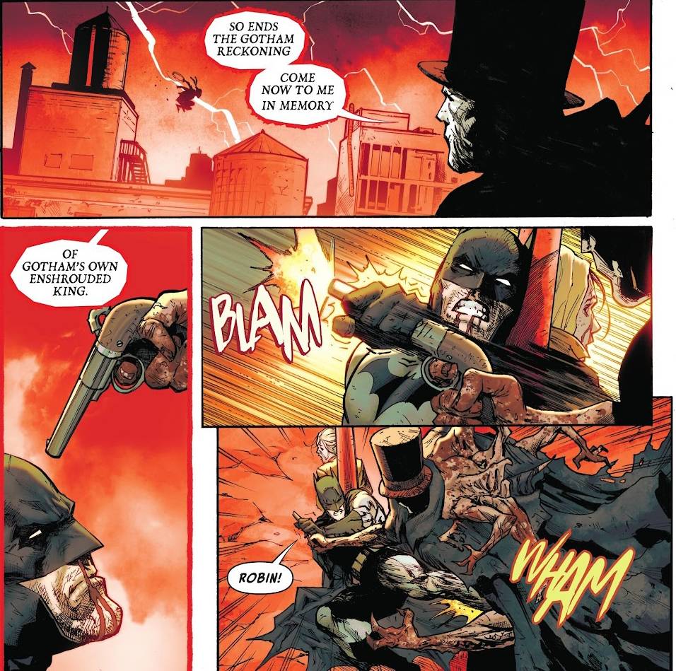 El arco siguiente, The Gotham Cycle, funciona tanto como un epílogo de Memento como un prólogo de The Quiet Man, y entiendo que lo que estoy mencionando es una obviedad, pero no siempre los guionistas trabajan así. Y acá Johnson lo hace, porque vemos las secuelas físicas y emocionales de lo que desencadenó este villano, y por fin somos testigos de un avance cuantitativo en la relación entre los protagonistas de la serie. Y los números dibujados por el portugués Miguel Mendoça son una locura… ¡¡¡qué pedazo de dibujante es este cristiano!!!
