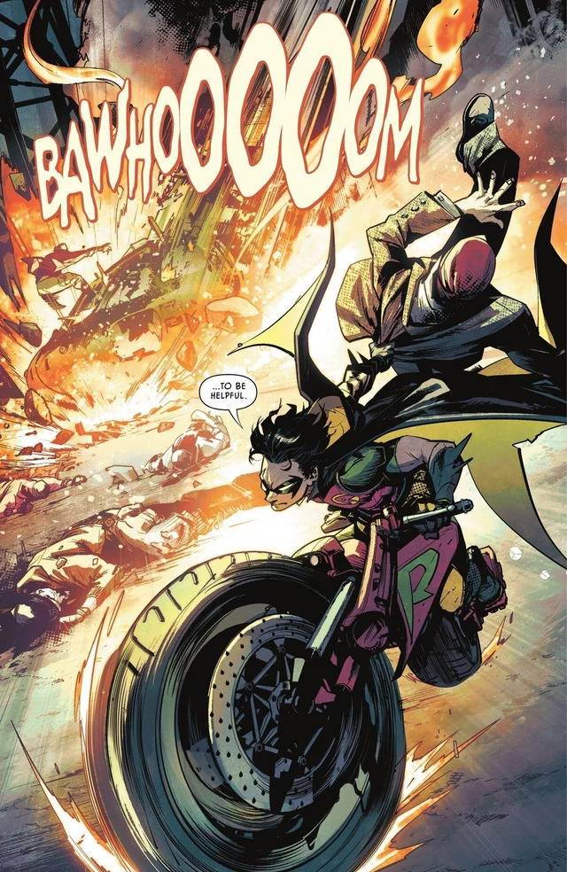 Ese primer año a cargo de Williamson fue muy dinámico, muy ecléctico por momentos, y ya ahí el foco estaba puesto en Damian y en lo que iba a tener que hacer para superar el duelo por la pérdida de Alfred, redefiniendo su personalidad mientras atravesaba el trauma. La conexión entre Bruce y su hijo era un tópico que se desarrolló a fuego lento, con pequeños detalles e interacciones sencillas pero memorables, y sorpresas que en algunos casos incluían ser testigos de cómo el alumno superaba al maestro en algunos pequeños desafíos auto-impuestos. Pequeños, nada alarmante. El dibujo del primer arco, a cargo del tano Simone Di Meo, seguro habrá alejado del título a más de uno, por su dinamismo y su similitud con la narrativa oriental, lo que en mi caso capturó mi atención. Esas páginas que sudaban neón y pollo frito me invitaron a darle una oportunidad, y no solamente la propuesta no me decepcionó: se transformó en una gratificante cita mensual. Sin embargo, justo en el arco en el que entra Ferreyra, al guionista se le nota el agotamiento, probablemente por la sobrecarga de laburo que tenía en esos meses, y el cambio de equipo creativo termina siendo un oportuno salvavidas.