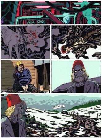 Mi criterio para determinar si una obra es a color o en blanco y negro, tiene que ver con mi obra anterior. Si la última fue a color, trato de que la próxima sea en blanco y negro. Así de simple. Cuando empezamos Saint-Elme con Serge Lehmann, yo estaba muy enganchado con la serie Euphoria, que fue el apogeo de una tendencia estética que estaba muy presente también en la publicidad y en los videoclips, y que probablemente esté vinculada a razones técnicas (cámaras digitales, placas LED, etc.). Esas caras mitad cobre y mitad fucsia con una zona de sombra en el medio… Son cosas que vienen desde los ´80, o que incluso ya las hacía Dario Argento en los ´70, y tenía ganas de entenderlas y de reproducirlas. Y me di el gusto de jugar con colores que en mis otras obras se ven poco, como el violeta, el turquesa, el rosa o el morado. También probé cosas nuevas con el Photoshop, a la hora de colorear. Me fui de esos colores discretos, con tonos pastel, a unos porcentajes más flasheros, más potentes.