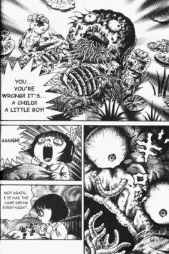 A lo largo de toda mi carrera como dibujante de manga de horror he escrito y dibujado 450 historias, y no todas son experiencias familiares o personales, ni tocan temas vinculados al horror. A veces las temáticas y las influencias vienen por otro lado. En el caso de El Niño Gusano, por ejemplo, la gran influencia es La Metamorfosis de Kafka. El film Sepukku también fue una gran influencia para mí y al principio quise ser director de cine. Sin embargo, también me gustaba dibujar. Solía dibujar en clase, cubriéndome con el libro de texto para que no me vieran. Un día mi compañero de pupitre me puso un montón de hojas para que siguiera dibujando y el resultado fue un manga. Mi sueño era ser director pero no me podía permitir comprar una cámara de ocho milímetros, algo muy difícil para un estudiante de secundaria. Descubrí, gracias a mi compañero, que podía contar historias sin coste alguno, dibujando.