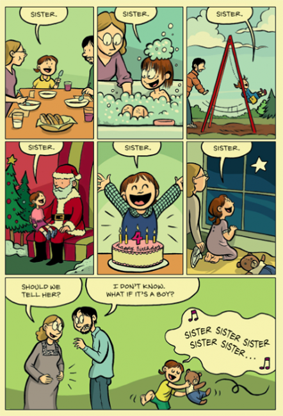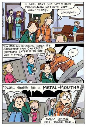 A los nueve años empecé a leer historietas y enseguida hice los primeros intentos de dibujar mis propias historietas. En la escuela secundaria traté de hacer una tira cómica, pero fracasé estrepitosamente porque no era buena contando chistes y armando la progresión hacia un remate en una estructura de cuatro viñetas. Más tarde, cuando me enganché con los comics alternativos, tipo el Optic Nerve de Adrian Tomine, o el Bone de Jeff Smith, pensé “okey, el formato de historieta me sienta un poco mejor”. Y empecé a hacer fanzines, allá por 1997. El primero fue Take-out, siete números de 12 páginas cada uno. Entre todos debo haber impreso 6000 ejemplares. De alguna manera, ese fanzine llegó a manos de los editores de Scholastic, me llamaron para conversar acerca de colaborar con ellos y en 2004 firmé contrato para mi primer trabajo profesional, que fue la adaptación a novela gráfica de The Baby-sitters Club. Y al mismo tiempo empecé a publicar en la web Smile, mi primera obra personal, bastante autobiográfica, por cierto.