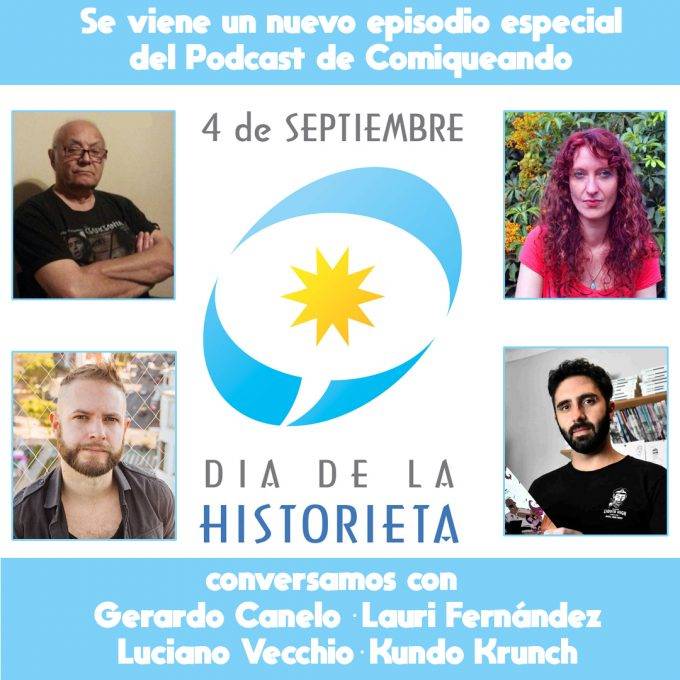 Una vez más festejamos el Día de la Historieta con un episodio extra-large en el que conversamos con cuatro referentes de nuestro medio. A lo largo de casi tres horas, te invitamos a escuchar lo que tienen para decirnos Gerardo Canelo, Lauri Fernández, Luciano Vecchio y Kundo Krunch, cuatro artistas del carajo, y cuatro miradas acerca de nuestra querida historieta argentina que nos brindan un panorama más que interesante.