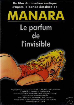 Hoy nuestro trajinar nos lleva a la adaptación de un comic, pilar fundacional del género erótico, una obra del italiano Milo Manara, ni más ni menos. Il profumo dell’invisibile (1986), cuenta la historia de Miel, un chica bastante ligera de cascos de la que se enamora un hombre invisible. Extraordinario hallazgo de Manara para volver a mostrar mujeres siendo penetradas, pero evitando “la chabacanería” de un pene desflorando a una vagina, para permitir que sean los ojos del lector los que hagan gozar a la susodicha. Esa idea se mantiene a lo largo de los 79 minutos que dura Le Parfum de l’ Invisible, la película animada dirigida por Francis Nielsen para la televisión francesa (distribuida en habla hispana por Track Media).