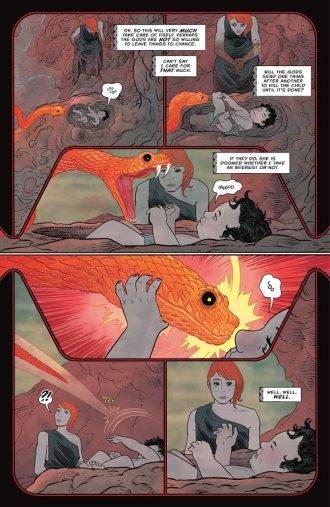 Luego hay detalles que son muy pequeños pero para mí son una exquisitez que levantan muchísimo la lectura. Los créditos del comic no están al comienzo sino en un punto de inflexión del relato en el primer cuarto de lectura, y seguido del mismo viene el primer flashback, que se conecta directamente con la última viñeta en el presente. Entiendo que es una pavada y que te plantea un sistema muy cerrado de lectura, pero es una estructura rígida que funciona muy bien y te pone límites muy claros para desarrollar las escenas, y también entabla una suerte de complicidad con el lector atento, la cual seguro se va a ver recompensada en un futuro.