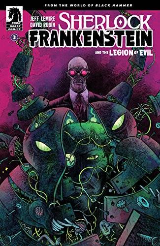El mes pasado comencé a recorrer con apenas unas pinceladas el enorme universo que gira alrededor de una de las mejores creaciones del canadiense Jeff Lemire, Black Hammer, y este viernes me propongo continuar dicha aventura abordando parte del resto del universo expandido que comenzó a crecer y multiplicarse a partir de la finalización del primer volumen de la serie madre, un ya lejano Septiembre de 2017. En el treceavo y último número de esta etapa, nuestros protagonistas quedaban eclipsados ante la presencia de la aparición de un nuevo Black Hammer, esta vez en la piel de Lucy Weber, la hija del héroe original, quien se materializaba frente a los camaradas de armas de su padre como un legado y una consecuencia de las acciones de su progenitor. El mes siguiente saldría a la venta Sherlock Frankenstein and the Legion of Evil, una miniserie de cuatro números con un título engañoso, guión del propio Lemire y dibujos del español David Rubín. Aquí nos enteraríamos de los motivos por los cuales la intrépida periodista Lucy Weber durante los últimos 10 años jamás desistió de buscar a su padre, aún cuando el resto del mundo lo consideraba muerto, junto al resto de los colegas superheroicos que pelearon la batalla final contra Anti-God en los cielos de Spiral City.
