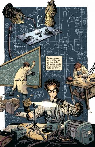 Si bien esta miniserie técnicamente no hace avanzar un ápice la trama principal, es gratificante conocer los orígenes de algunos de los villanos más llamativos y peligrosos que jamás tuvo el grupo que aún se encuentra atrapado en la granja, y por supuesto que también es un deleite la deliciosa narrativa de un Rubín super curtido con una expresividad en sus trazos que por momentos es envidiable. En Enero de 2018 culmina esta miniserie y en Marzo del mismo año comienza Doctor Star and the Kingdom of Lost Tomorrows, otra miniserie, también de 4 números, la cual lo encuentra a Lemire laburando codo a codo con nuestro coterráneo Max Fiumara, en un precioso spin-off que no es otra cosa más que una emotiva y muy ingeniosa carta de amor al Starman de James Robinson. Me cuesta expresar en palabras lo mucho que disfruté esta retrospectiva que el protagonista de la miniserie, Jimmy Robinson, realiza sobre su propia vida, y creo que a cualquiera que haya leído mucho de DC Comics de los ’90 le va a pasar exactamente lo mismo. Ni falta hace mencionar el espléndido laburo que realiza Fiumara, que incorpora de forma brillante e inteligente guiños y detalles que conectan a este personaje con el homenajeado y su universo, y mejora incluso los diseños originales que había planteado Rubín que ya de por sí eran bastante geniales.