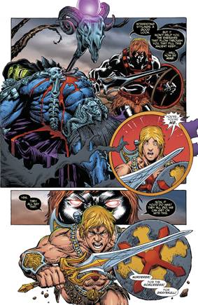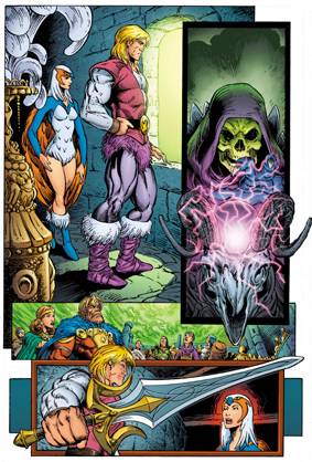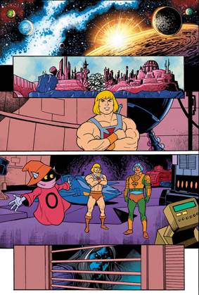 A medida que la historia avanza nos pone en contacto con otras versiones alternativas de Eternia, y por ejemplo en el cuarto número podemos ver en acción a la clásica versión animada de Filmation, mientras que en el número previo nos encontraremos con lo que en su momento fue una secuela canónica del cartoon original, The New Adventures of He-Man (1990-1991), donde un He-man en un futuro Sci-Fi (con un tono muy parecido a las aventuras de Buck Rogers) combatía el mal liderando a sus Galactic Guardians.