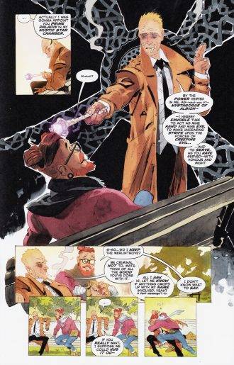 Cuando tomamos distancia de los seis números publicados, nos damos cuenta de que la movida de Spurrier es muy inteligente, y más allá de abordar al personaje de la forma correcta, y de escribir el tipo de diálogos y situaciones que uno espera de John, uno de sus claros objetivos es señalar lo que para todos nosotros debería ser obvio: Constantine se transformó en un dinosaurio, un personaje que quedó desfasado en el tiempo y al cual la actualidad le pasó por encima, no solo por su poco apego a la tecnología (para lo cual el escritor se reservó un hermoso chiste que no pienso revelar en este texto) sino también por los cambios que se dieron en nuestra sociedad durante la última década, muchos de los cuales atacan de forma directa un montón de costumbres y vicios que el personaje arrastra desde (por lo menos) los años ´80.