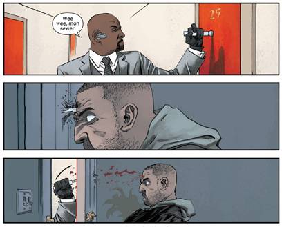 Mientras que las andanzas de Marc Spector narradas por estos autores eran de fácil entendimiento y sencilla digestión, la aventura que se desarrolla en las páginas de Injection requiere que el lector ponga mucho de sí para lograr un disfrute pleno, y exige una confianza plena en el equipo creativo, el cual, de todos modos, cuenta con la garantía de un guionista que pocas veces decepciona. El número inicial de Injection resulta por momentos confuso y no pemite entrever demasiado del camino que estamos por recorrer, al punto tal que muchos podrían opinar con justa razón que sólo se sostiene por el arte de Shalvey y Bellaire. Pero ya en el segundo número las piezas se comienzan a acomodar y deduzco será complicado para muchos de ustedes separarse de esta extraña mezcla de elementos sobrenaturales sostenidos por la ciencia ficción más dura que el comic moderno puede darnos.